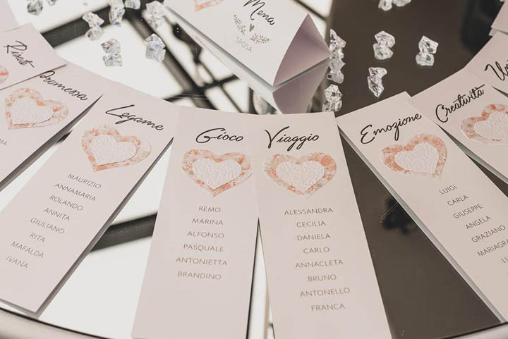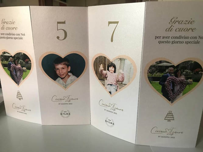 Che sia classico, ad una facciata, ripiegabile, a segnalibro, con segnaposto, a cavallotto, a cuore o qualsiasi altra idea Voi abbiate, noi lo realizziamo con cura, amore e creatività