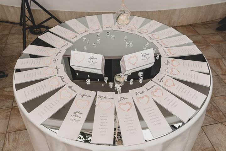 La cura dei dettagli del Vostro matrimonio perfetto passa anche per l'accoglienza degli invitati. Rendete unico il Vostro tableau con le nostre soluzioni quali: ad albero, a specchio, classico o personalizzato